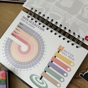 Incluye 12 hojas de notas mensuales y, en el reverso de cada mes, un Habit Tracker para ayudarte a mantener tus hábitos, rutinas y metas personales durante todo el año.